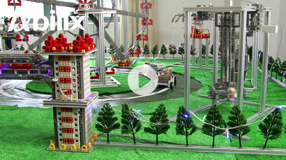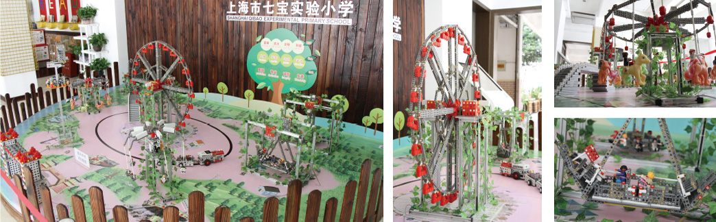 This is a vivid, compelling and attractive comprehensive project. It possesses eight moving parts including ferris wheel, large pendulum, pirate ship, merry-go-round, swinger, turbo drop, flying swing and sightseeing bus; unmovable parts like the gate, walls, arch bridges and greening are also included in this project. The area of the project is 300*300cm, together with showcase and power. The main function of the project is to teach and display. Students can copy all parts with their own thoughts instilled in. With the cooperation of different groups of students, they are likely to construct their own amusement park.