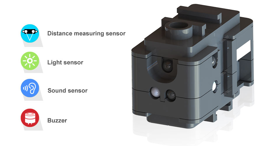 The sensor H-S100 integrates the distance measuring sensor, light sensor, sound sensor and buzzer together.