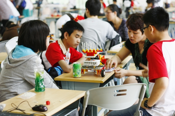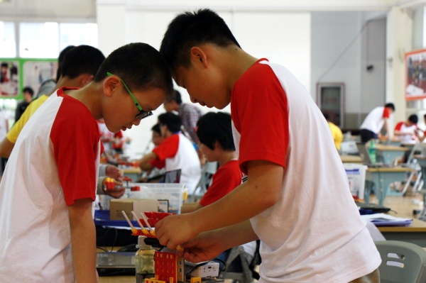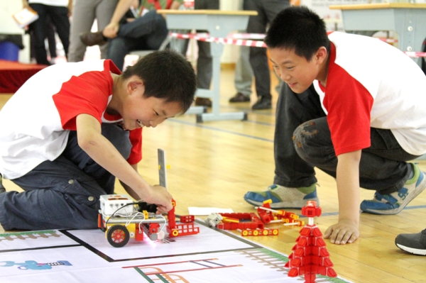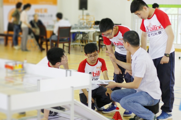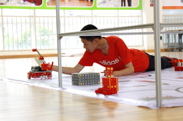 After getting additional subtasks, teachers and students were given a few minutes to decide their strategies. Though teachers were in a hurry, it could only be the students to debug their robots. So it depended on the practice ability and the daily training of students.